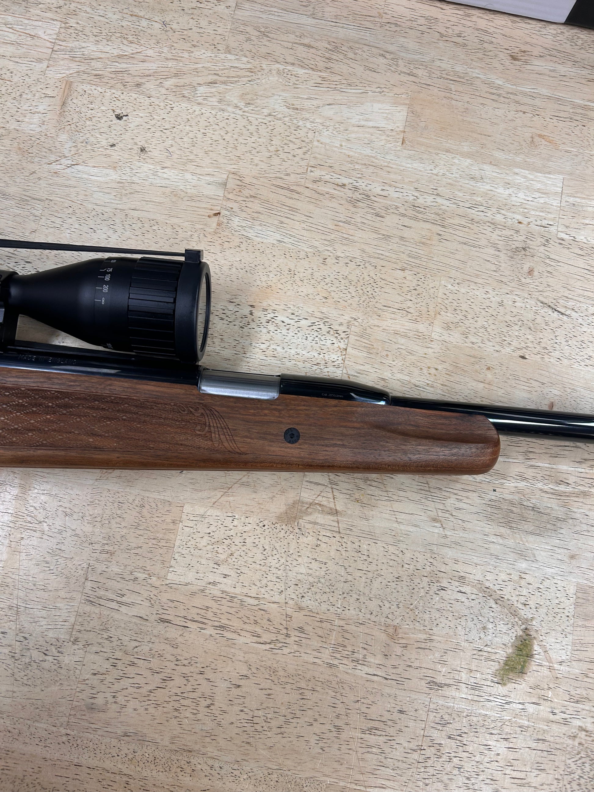 This rifle is in very good condition. The only visible marks are on the right had side of the barrel. The rest of the rifle is mint.