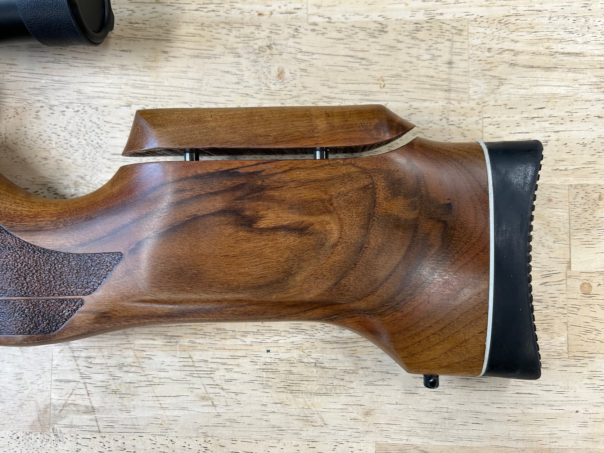 This is an exceptional example of the Benjamin Kratos in .22 calibre, presented in excellent condition and fitted with a powerful Richter 6-24×50 AO scope. The Kratos is a full-power, multi-shot PCP designed for accuracy, reliability and serious pest control performance. Its side-lever action, adjustable trigger and handsome hardwood stock make it a highly capable and attractive rifle.